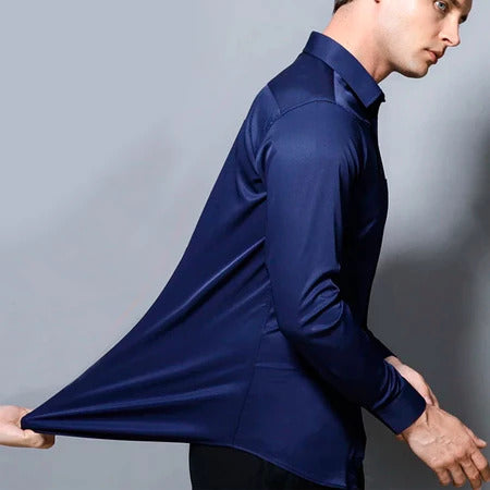 UErleben Sie das ultimative Zusammenspiel aus Stil und Bewegungsfreiheit mit unserem knitterfreien Stretchhemd. Entworfen für den modernen Mann, der höchste Ansprüche an sein Erscheinungsbild stellt, kombiniert dieses Hemd makellose Eleganz mit außergewöhnlichem Tragekomfort. Das dehnbare Material passt sich Ihrer Körperform perfekt an, während der hochwertige, knitterfreie Stoff Ihnen den ganzen Tag über einen frischen, gepflegten Look verleiht.
