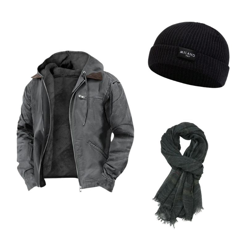 Das HÖLZ 2 Kit vereint drei essenzielle Teile, die jeden Ihrer Tage begleiten – vom kühlen Morgen bis zum Abend in der Stadt.