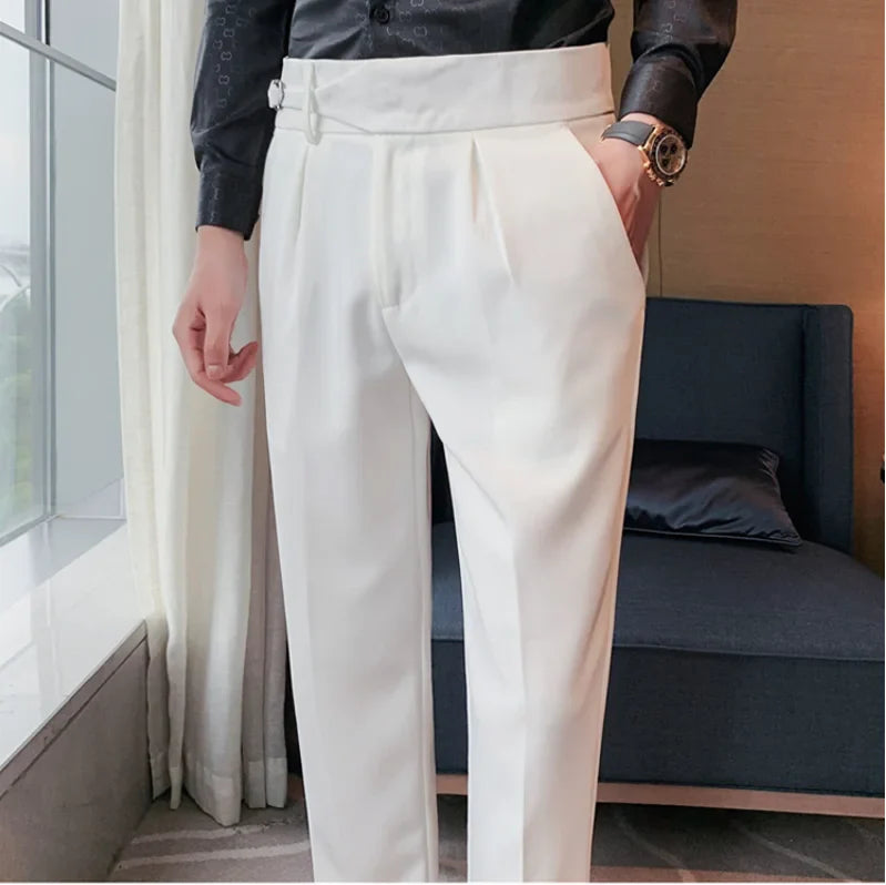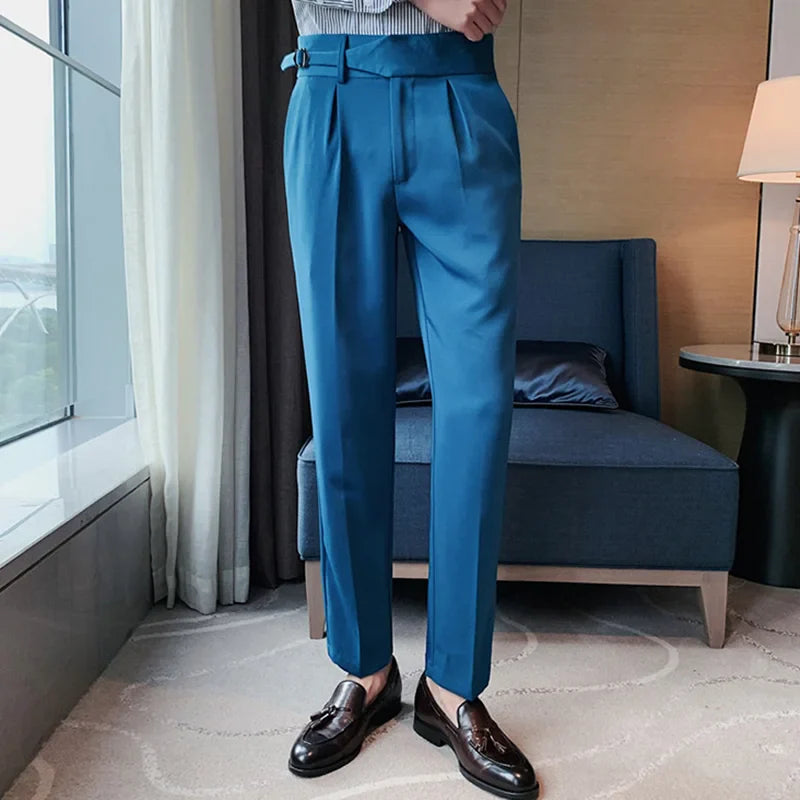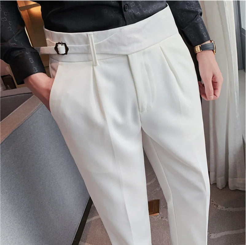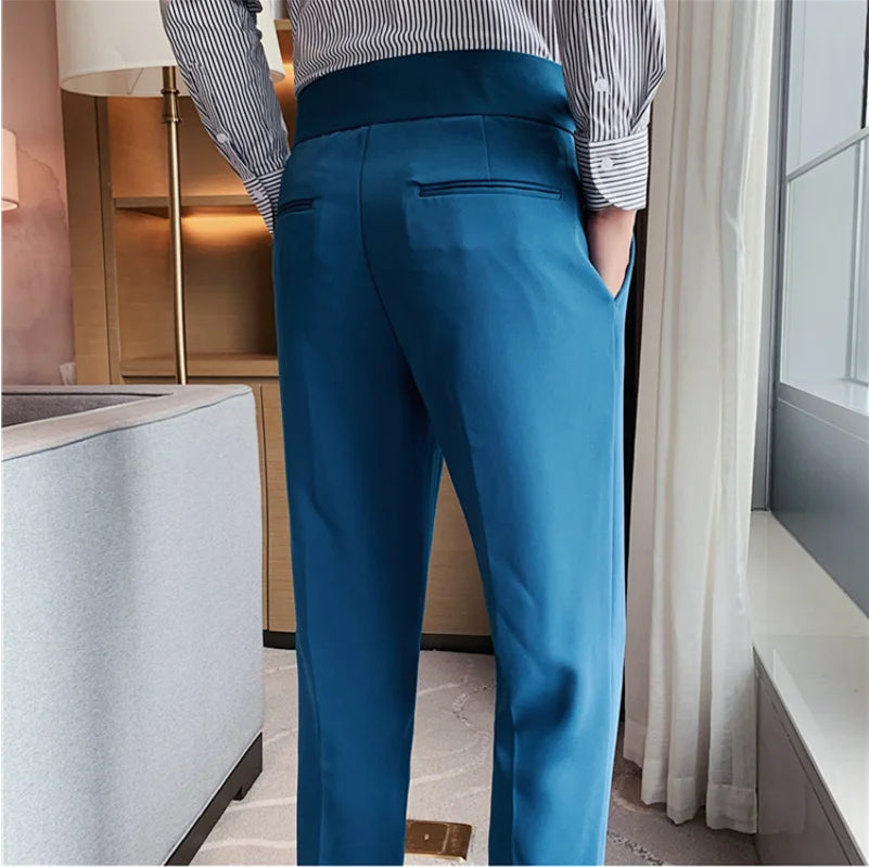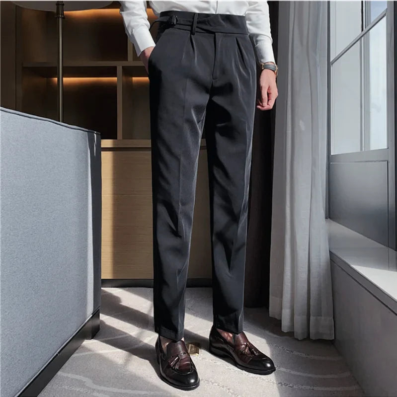 Der seitlich verstellbare Bund sorgt für eine perfekte Passform, ganz ohne Gürtel, und macht diese Hose zum vielseitigen Must-have – ob im Alltag, im Büro oder bei besonderen Anlässen. Die schlanke Passform betont die Silhouette auf stilvolle Weise und verleiht jedem Outfit eine anspruchsvolle Note.